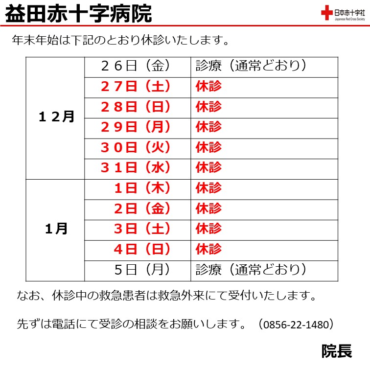令和7年12月27日(土)〜令和8年1月4日(日)は休診いたします。