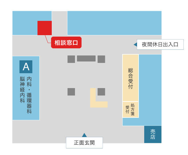 | 場所 | 1階 医療社会事業課 医療社会事業係 相談窓口 |